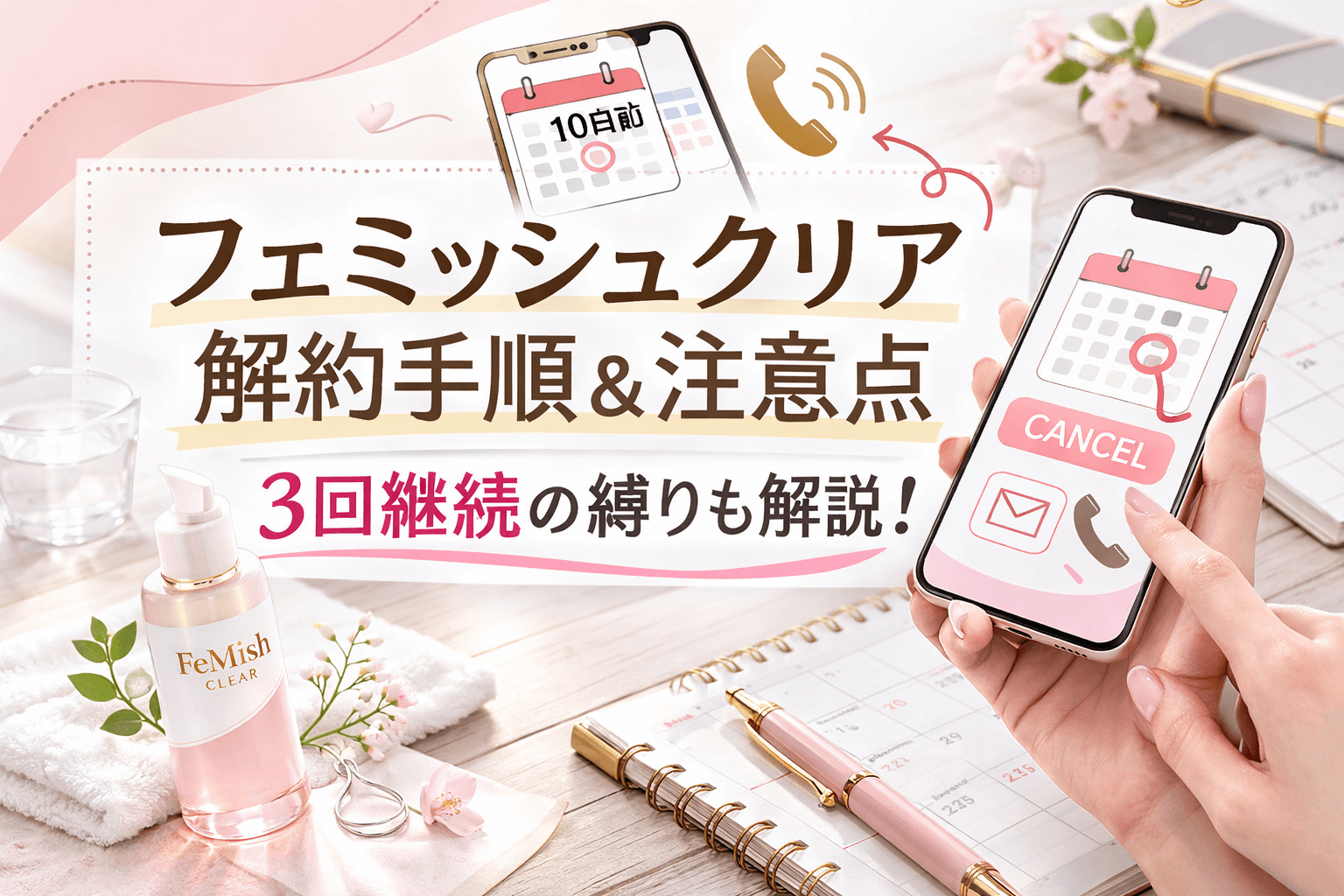 フェミッシュクリアの解約手順は?3回の定期縛りなど注意点を徹底解説!